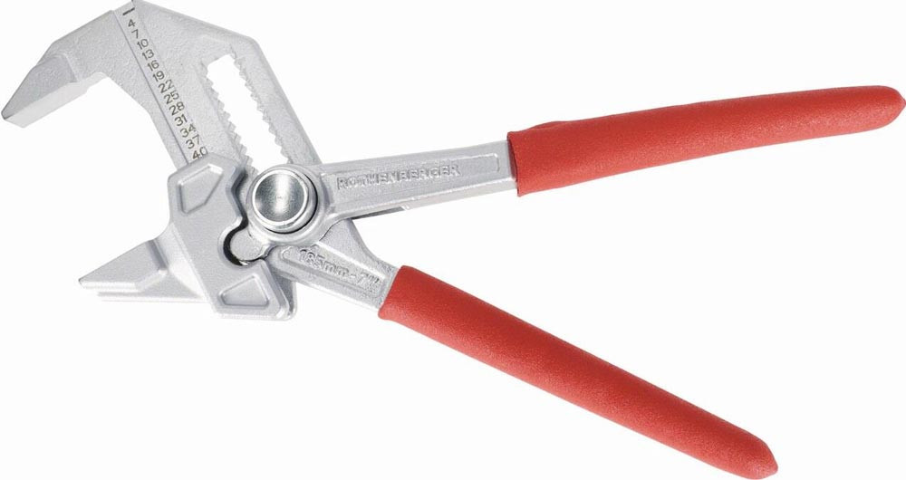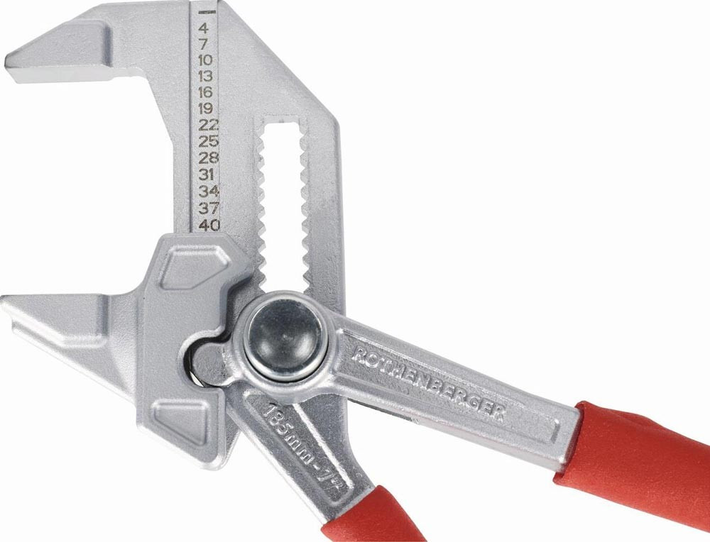 der Zangenschlüssel ist vielseitig nutzbar ob zum Greifen, Halten, Biegen oder als Maulschlüssel-Satz von oberflächenempfindlichen, verchromten Verschraubungen · Plangeformte Backen für schonendes Öffnen oder Anziehen von hochwertigen Schraubverbindungen · Greifkapazität um + 20% erhöht durch Curve-Shape-Design sowie Knopf für Größen-Schnellverstellung · immer sicheren und festen Halt mit dem 2K-Handgriff