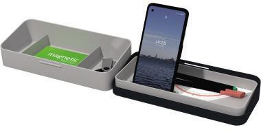 Der Tischorganizer garantiert höchste Ansprüche an Umwelt- · Gesundheits- und Gebrauchseigenschaften. Das Produkt besteht aus mindestens 80 % Post- Consumer Material und ist ideal für den ständigen Arbeitsplatzwechsel (Büro · Home-Office · Co-Working-Spaces) geeignet. Das stapelbare Produkt besteht aus drei Teilen · einem abnehmbaren Deckel mit Schnappverschluss · einer herausnehmbaren Stiftschale mit integriertem Handyhalter und einem Unterteil mit Stifthalter und drei Fächern in verschiedenen Größen für z. B. Haftnotizen und Kleinteile. Alle drei Teile können platzsparend ineinander gestellt werden.